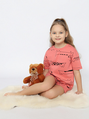 Пижама для девочки (футболка, шорты) коралловая