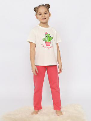 Пижама для девочки (футболка, брюки) экрю