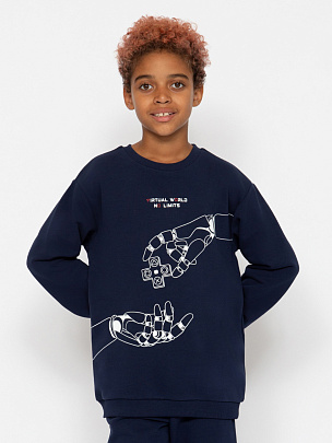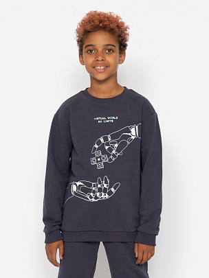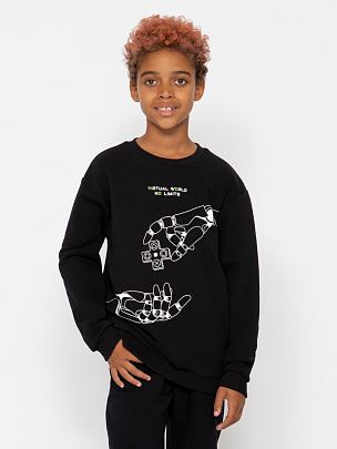 Футболка прямого силуэта удлиненная. Короткий цельнокройный рукав. Круглая горловина обработана узкой притачной обтачкой из рибаны с эластаном. Полочка декорирована принтом с использованием красок с блеском "воображение правит миром". Разрезы по бокам.