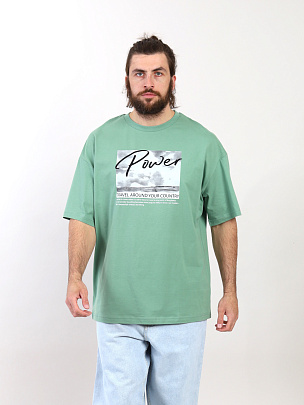 Футболка прямого силуэта длиной до бедер. Короткий рукав. Круглая горловина обработана узкой притачной обтачкой из рибаны с эластаном. Полочка декорирована принтом и текстильной нашивкой "ясное будущее естественное и аутентичное".