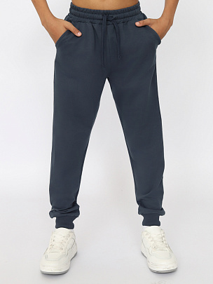 Брюки для мальчика с карманами. Пояс притачной, с резинкой и функциональным шнуром. Нижние срезы брюк на резинке. В области левого кармана небольшой принт "СПОРТИВНАЯ КОМАНДА"с эффектом высокой базы. Правая половинка брюк декорирована принтом.