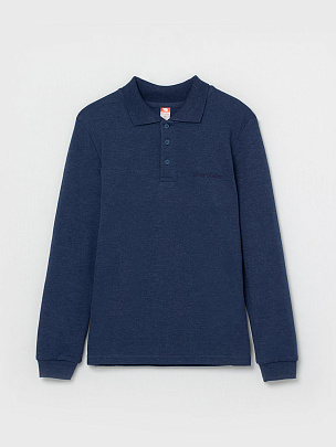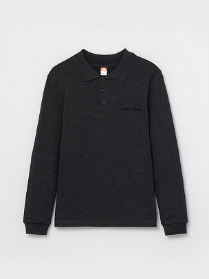 Джемпер для девочки с короткими рукавами, свободного силуэта, спущенным плечом и отложным воротником. Сзади застежка на пуговицу. Спереди декорирован металлическим лейблом.
