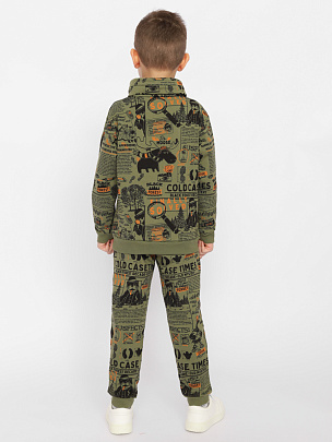 Толстовка с высоким воротником из основного полотна, карманом "кенгуру" и притачным поясом. Воротник спереди со вставкой из полотна с эластаном. Рукава длинные, с манжетами. Манжеты и пояс выполнены из полотна с эластаном.