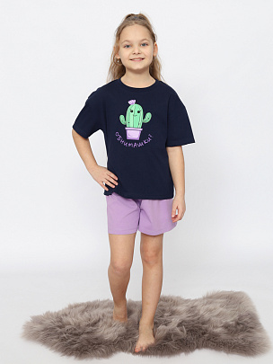 Пижама для девочки из футболки и шорт. Футболка оверсайз с круглой горловиной и короткими рукавами, свободного кроя с милым принтом. Шорты, без карманов из набивного хлопка, имеют удобную посадку, благодаря широкому эластичному поясу. Изделие изготовлено из мягкого и приятного на ощупь полотна. Пижама с шортами - это удобная и универсальная домашняя одежда, в которой можно спать, но и провести весь выходной.