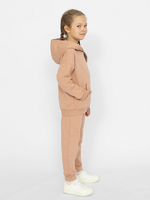 Костюм из футера худи и джоггеры для девочки. Брюки-джоггеры и худи с капюшоном и карманом-кенгуру - удобная и универсальная повседневная одежда, для сада, для занятий спортом. Худи с капюшоном свободного силуэта, карманом-кенгуру, пояс и манжеты из трикотажного полотна кашкорсе, которые надежно облегают запястье ребенка. На кармане декоративная нашивная этикетка с надписью - "Никогда не переставай мечтать". Брюки свободного силуэта, с манжетами из футера и резинкой в поясе. Спортивный костюм...