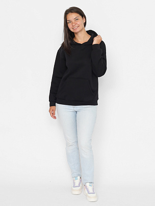 Толстовка женская с капюшоном БЕЗ ШНУРКА и карманом-кенгуру. Манжеты и пояс из эластичной рибаны. На рукаве декоративная силиконовая этикетка CRB.