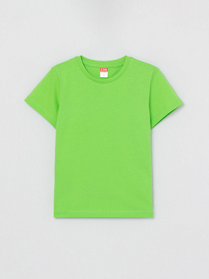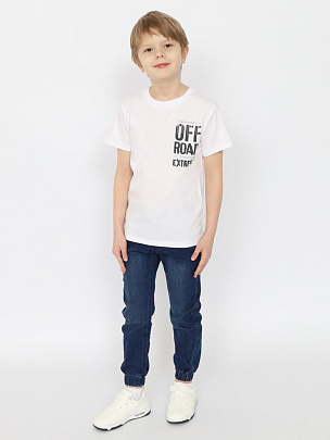 Футболка с коротким рукавом. Горловина круглая, обработана узким воротником из полотна с эластаном. Перед оформлен небольшим принтом.